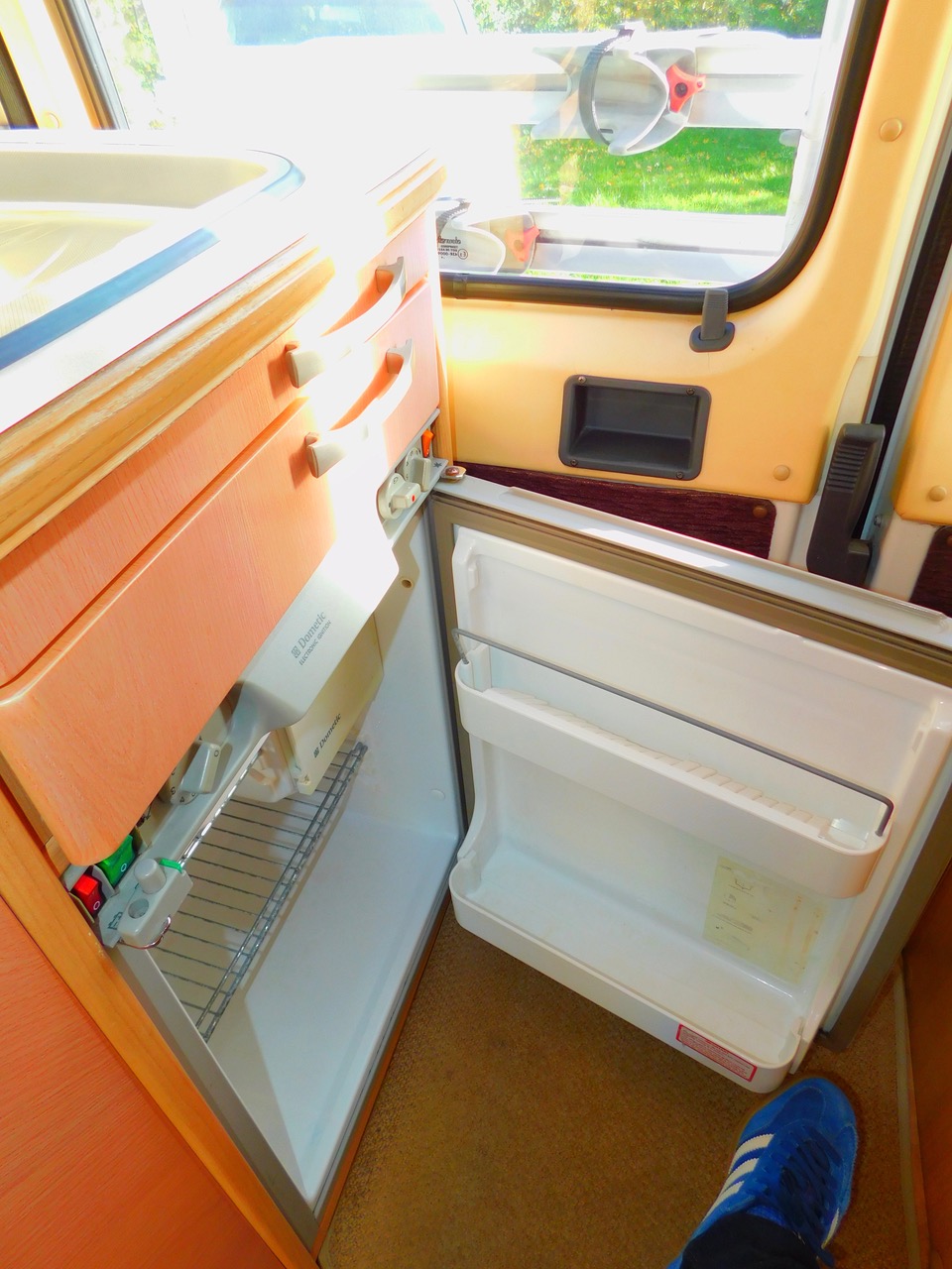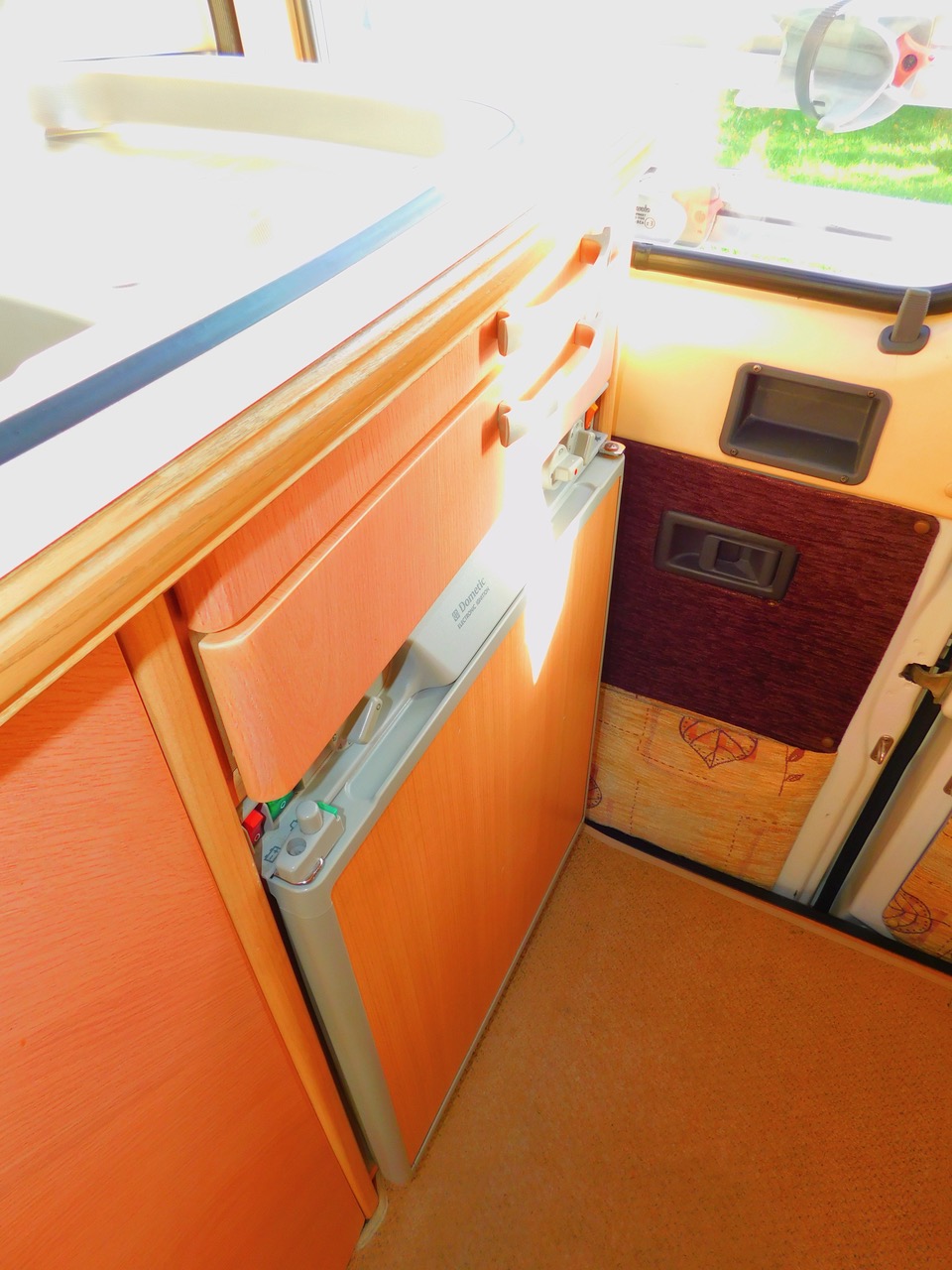 The Kitchen is Comprehensively fitted and this Includes a Gas Oven and Grill plus a 3 Burner Gas Hob, a Large Fridge with a Freezer Compartment, a Sink with an electric Tap and Drainer as well as plenty of Worktop Space and Storage Cupboards etc. I always like the fact that on this model we get the 2 x large rear doors which means that we have the choice of entering or exiting the Symbol through the large side sliding door or the rear doors. This of course also allows excellent air flow throughout.We also get a Large Rear Step outside the 2 x Rear Doors.