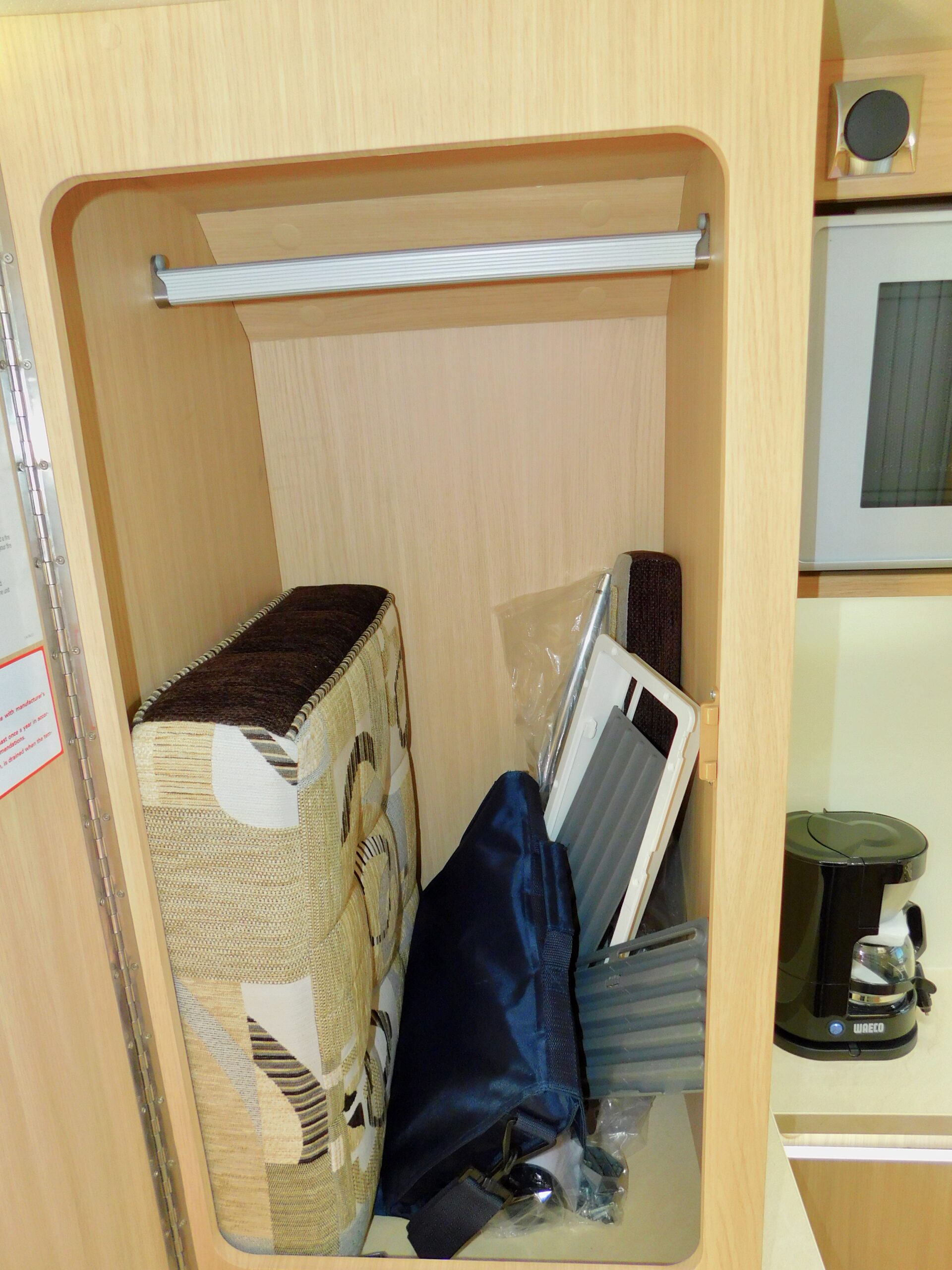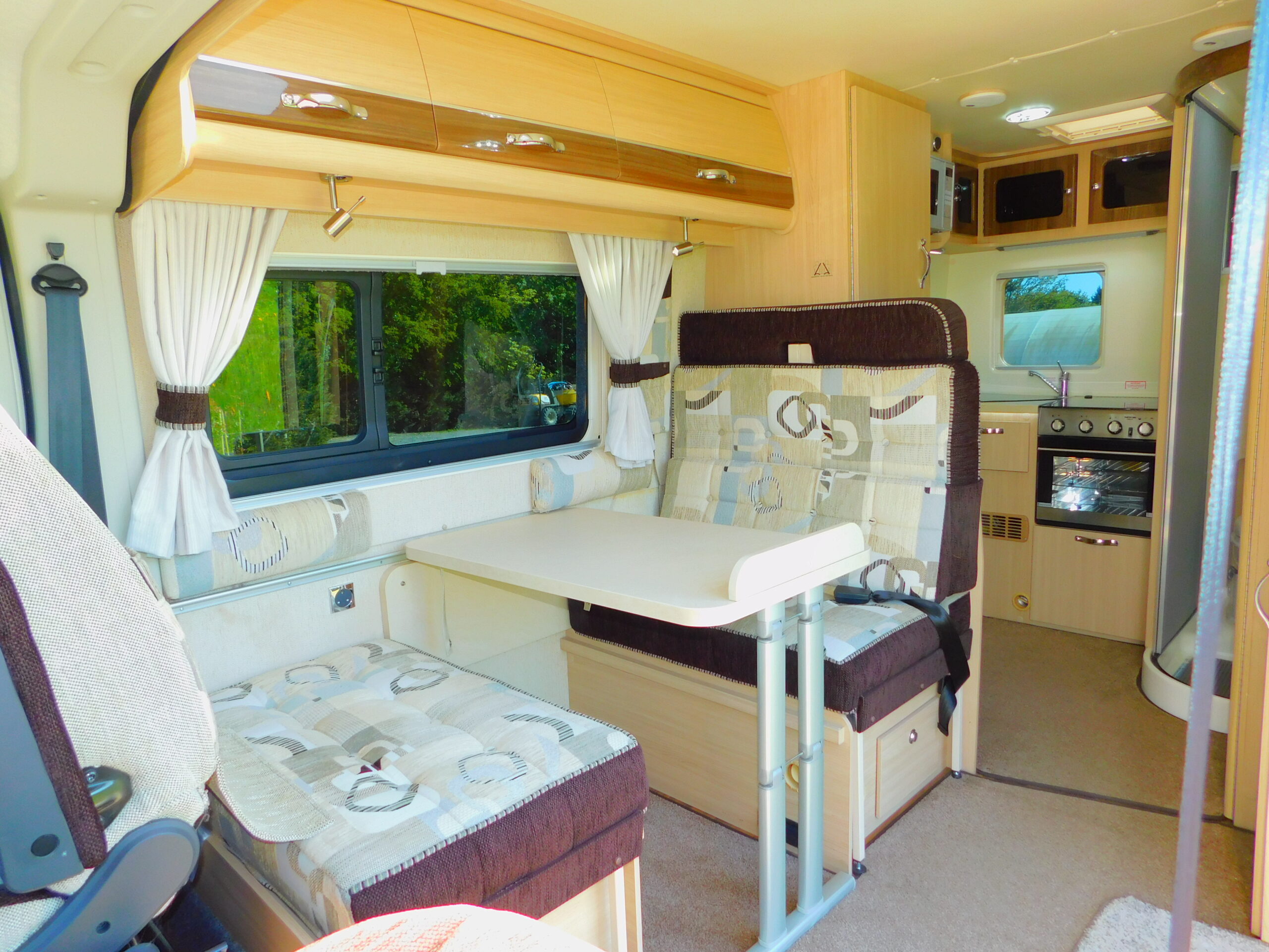 The LOUNGE and DINING are will Comfortably seat 4 or 5 People. We even have wall mounted cushions below the side window to enable you to sit sideways across the seating. The front Captains Passenger Seat Swivels to become part of this area. We have Stylish LED Lighting throughout; plus of course Central Heating and Hot Water. There is also a wall mounted adjustableTV Bracket. I believe that there are a total of about 5 or 6 3 point electric sockets in this Stanway..