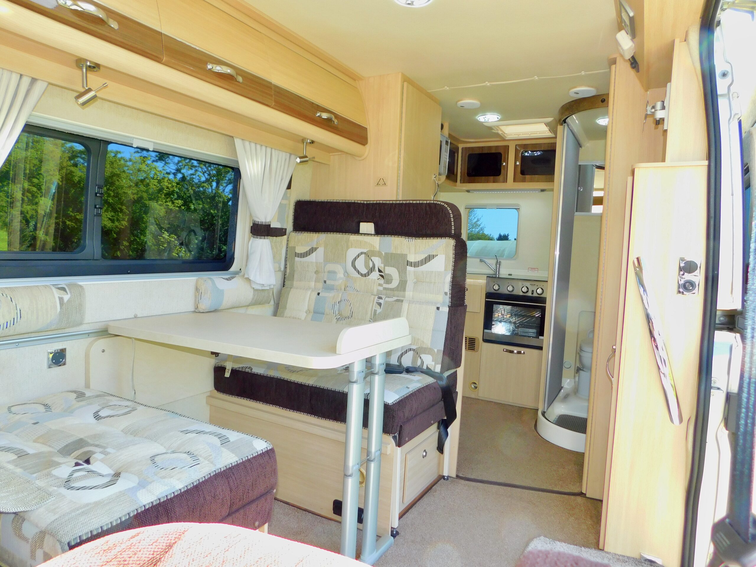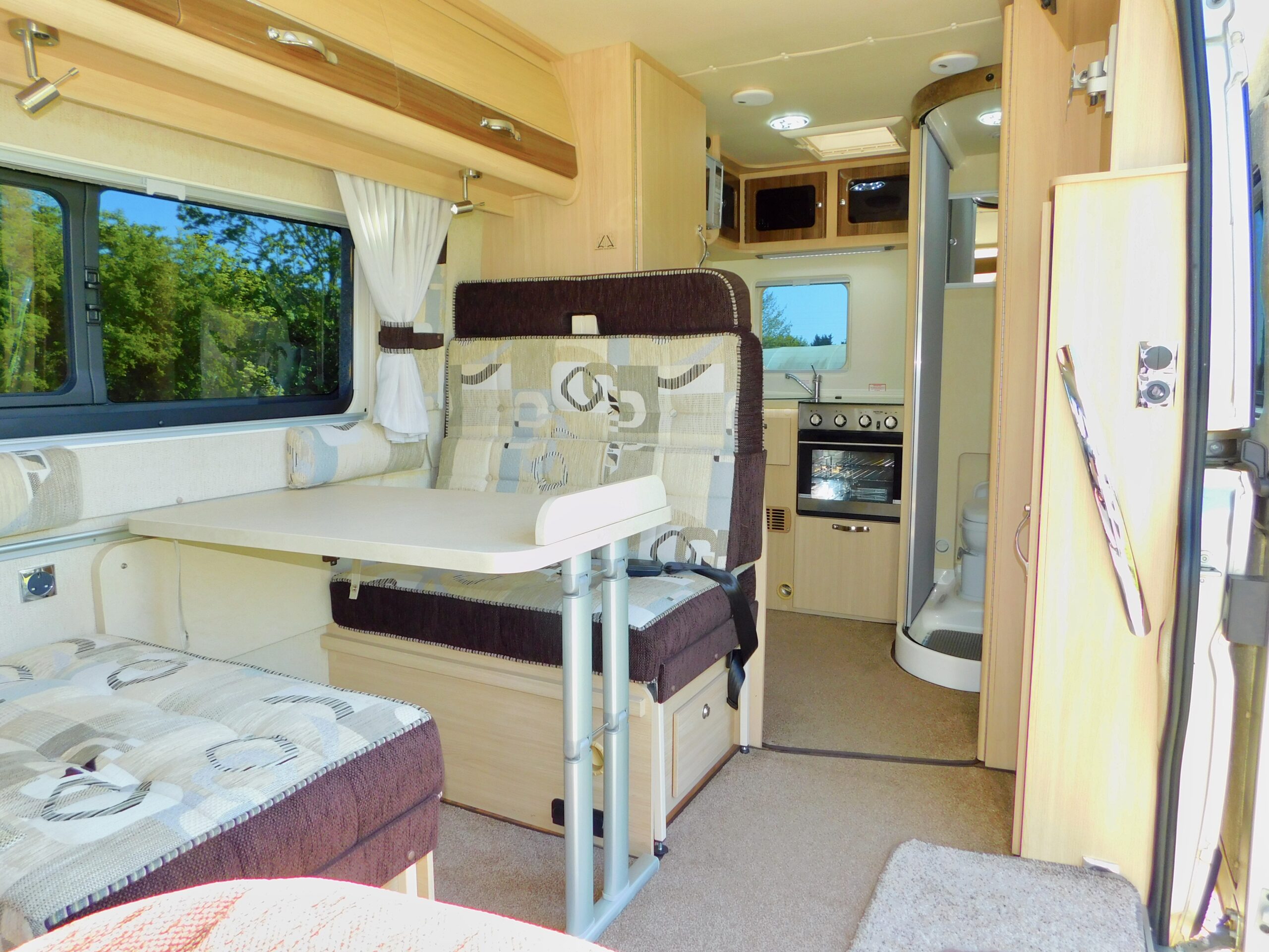 We get a Huge amount of Floor Space as well as a Brilliant Spacious L Shape Kitchen and a Super Shower Room. There are a plethora of Storage Cupboards throughout. Superb Design with the Rear Seat that easily converts to a Double Bed that measures approximately 6 feet 4 inches Long x 4 feet 6 inches Wide. The payload is excellent at approximately 562 Kgs. 6 Speed Manual Gearbox.