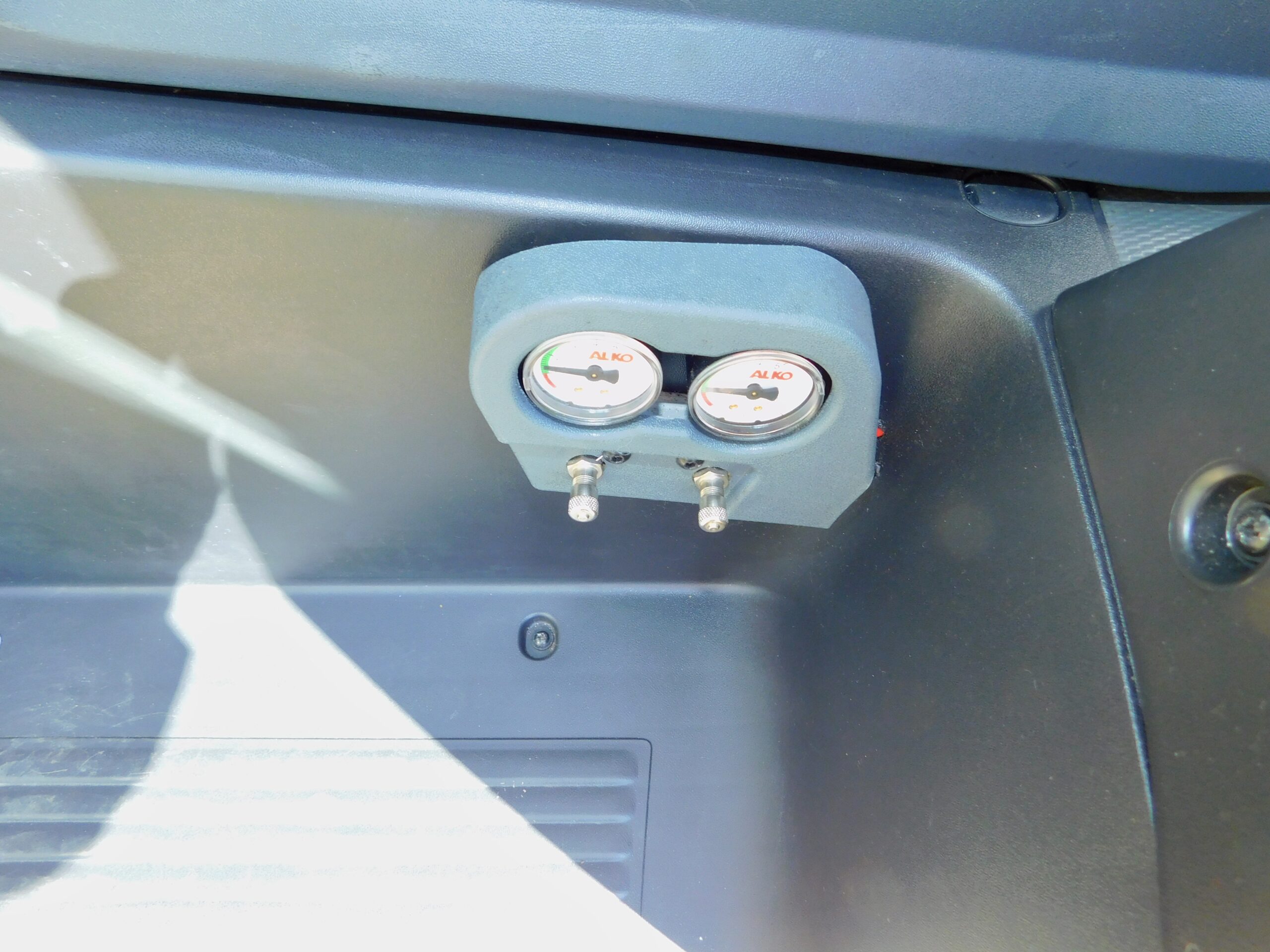 On the Outside we have stylish Alloy Wheels, a large matt black cassette with stylish roll out fabric Thule Omnistor roll Out Awning plus a roof mounted Solar Panel. We also have a Roof Mounted Solar Panel and a roof mounted Digital TV Aerial. There is also a Tow Bar with Electrics. You could attach a tow bar mounted bike rack if you should want to, as we also have a Bike Alarm built in. Another great feature is the Gas It Refillable bulk underslung Gas Tank that give you the advantage of virtually half price LPG Gas. Finally, Another great feature is the Alko adjustable Air Suspension.