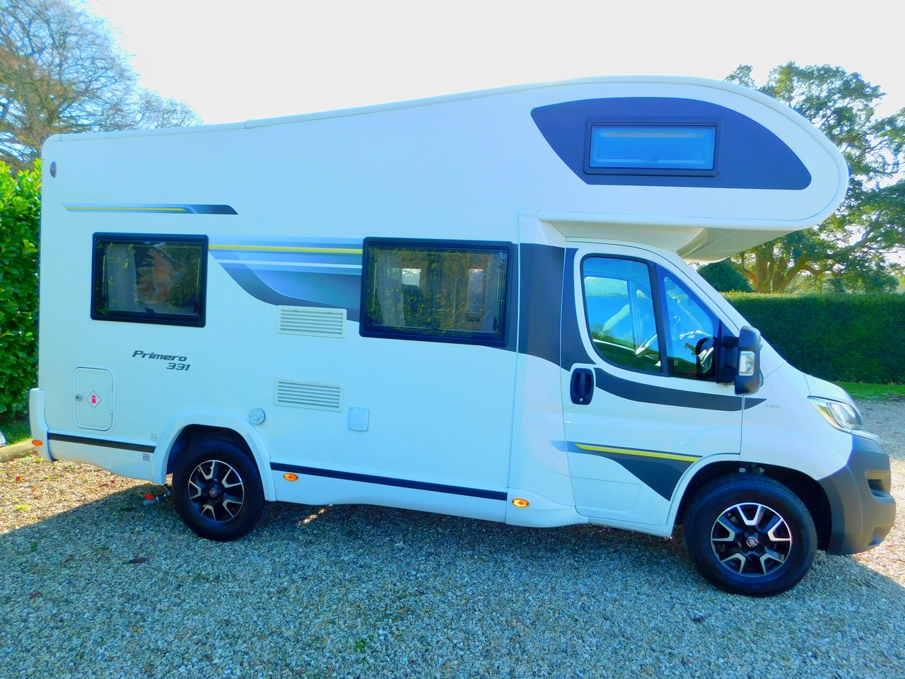 Benimar Primero 331 Full 4 Berth with 2 x DOUBLE Beds and 4 Seat Belts. July 2020 with Only 14,000 miles from New. Only 5.99m Long.