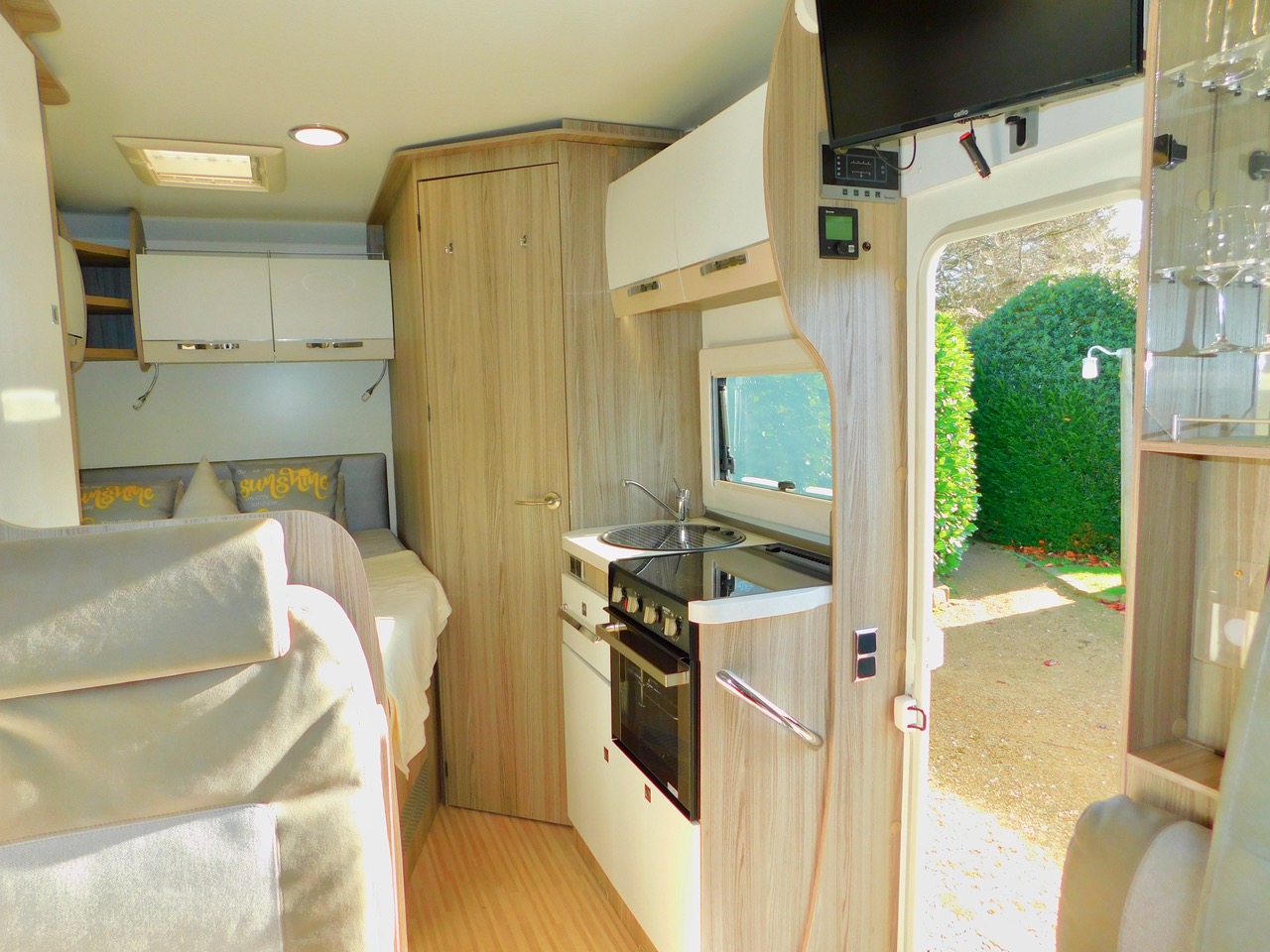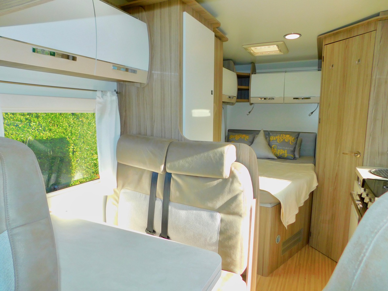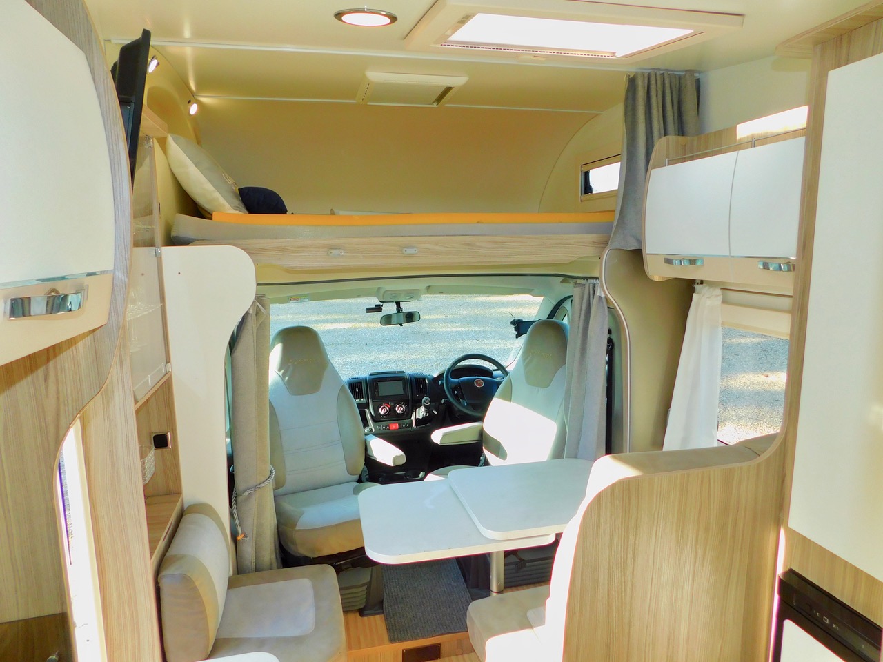 The Habitation Door is even on the Correct Nearside for the UK!! 4 Berth and 4 Seat Belts, 3500 Kgs, )only 5.99m Long which makes it so easy to Drive, manouvre and Park. We have 2 x Huge Double Beds. A Beautiful Kitchen and Shower Room, And you Do NOT Lose your Lounge when the BEDS are in Use..