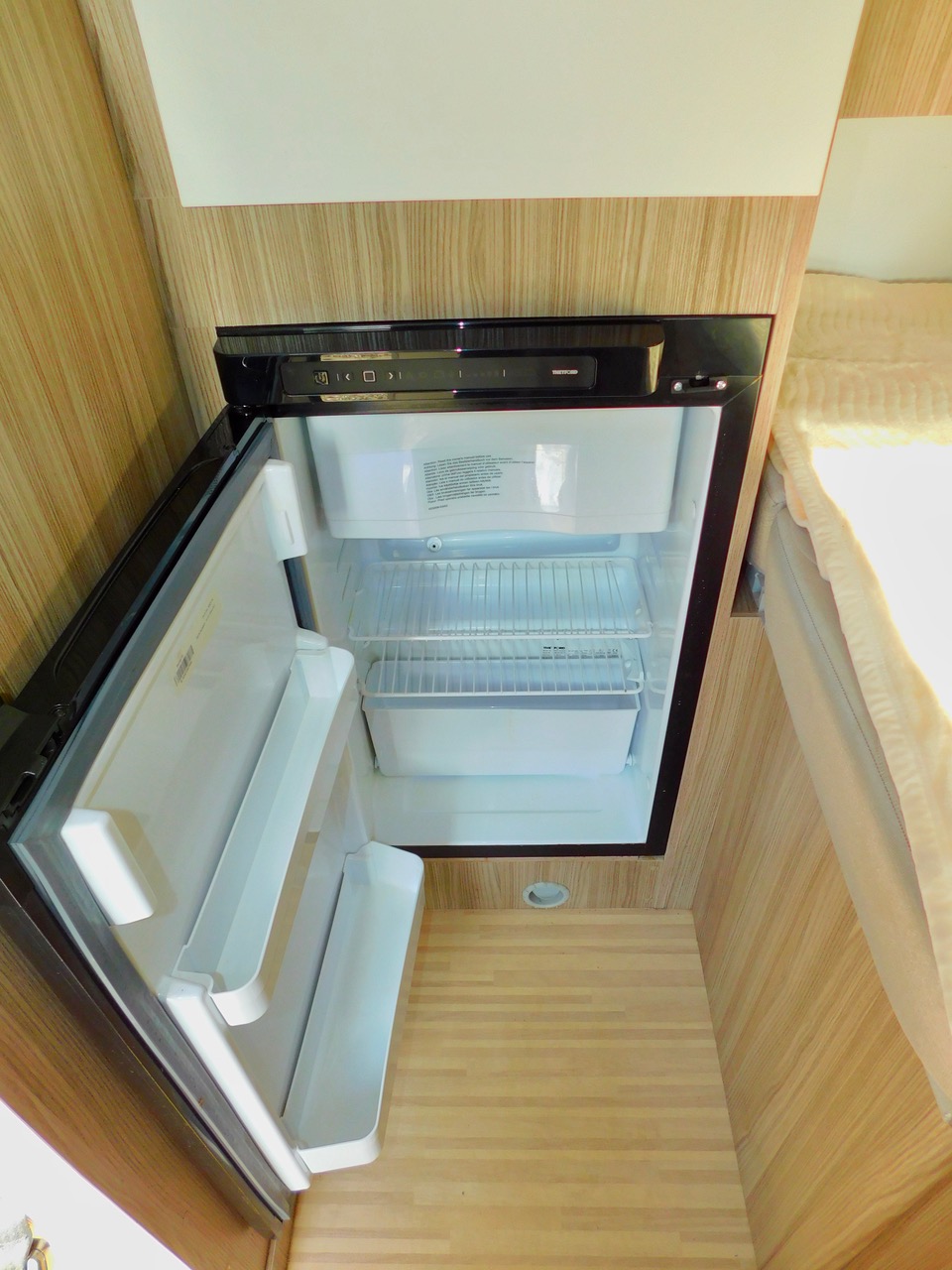 And, despite this Primero’s diminutive length, you could consider using it as a four-berth on a regular basis. There are four travel seats, of course, thanks to the half-dinette-style lounge but it’s the overcab bed that really makes a difference. Here’s an instant, always-available double (which the brochure says is a mightily generous 2.05m or 6 feet 7 inches by 1.55m or 5 Feet) that comes with lighting, a roof vent and an opening window. And, when it’s occupied, you haven’t lost your lounge, so you can pop the kids up there – in their own ‘den’ – and still relax down below.