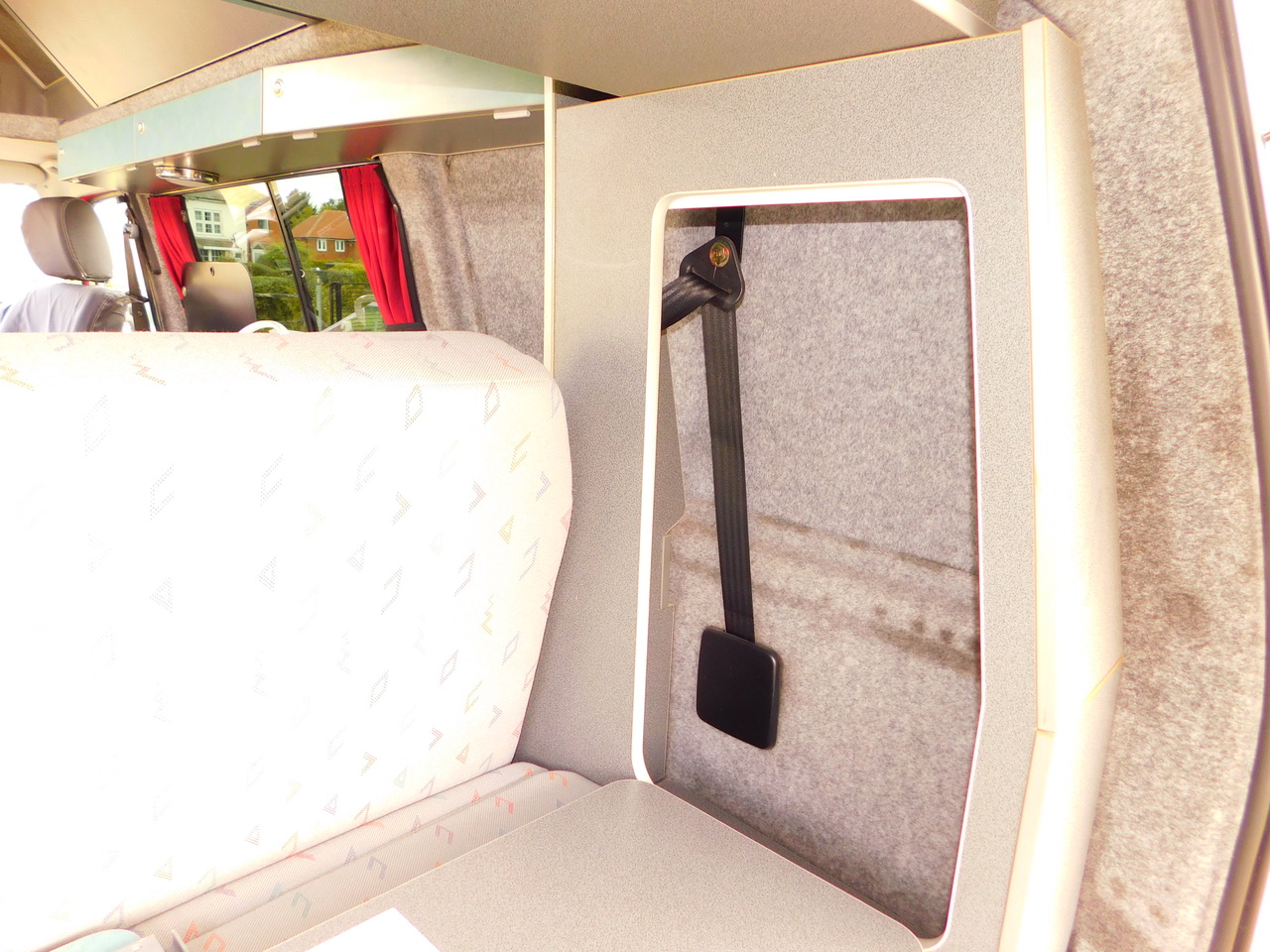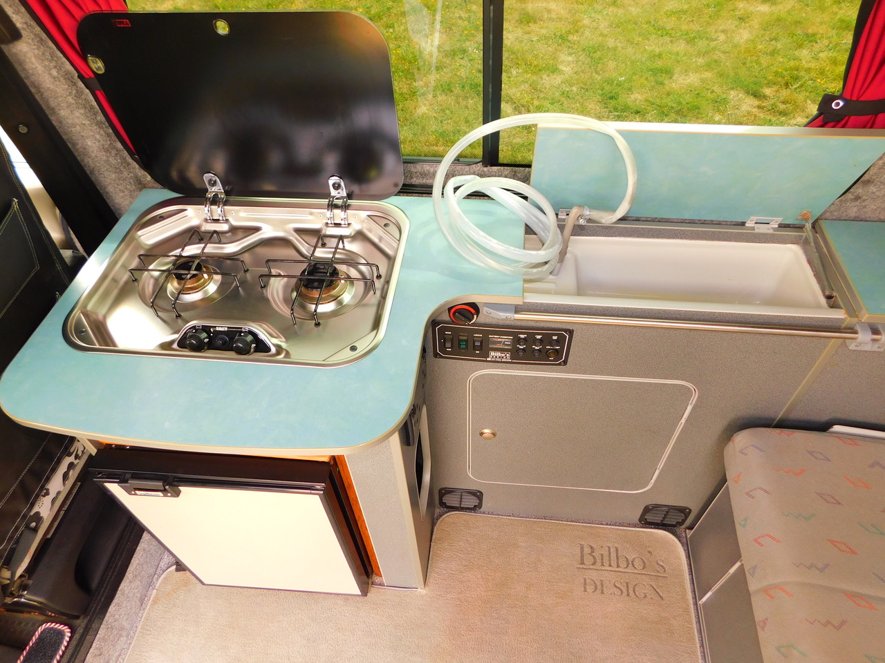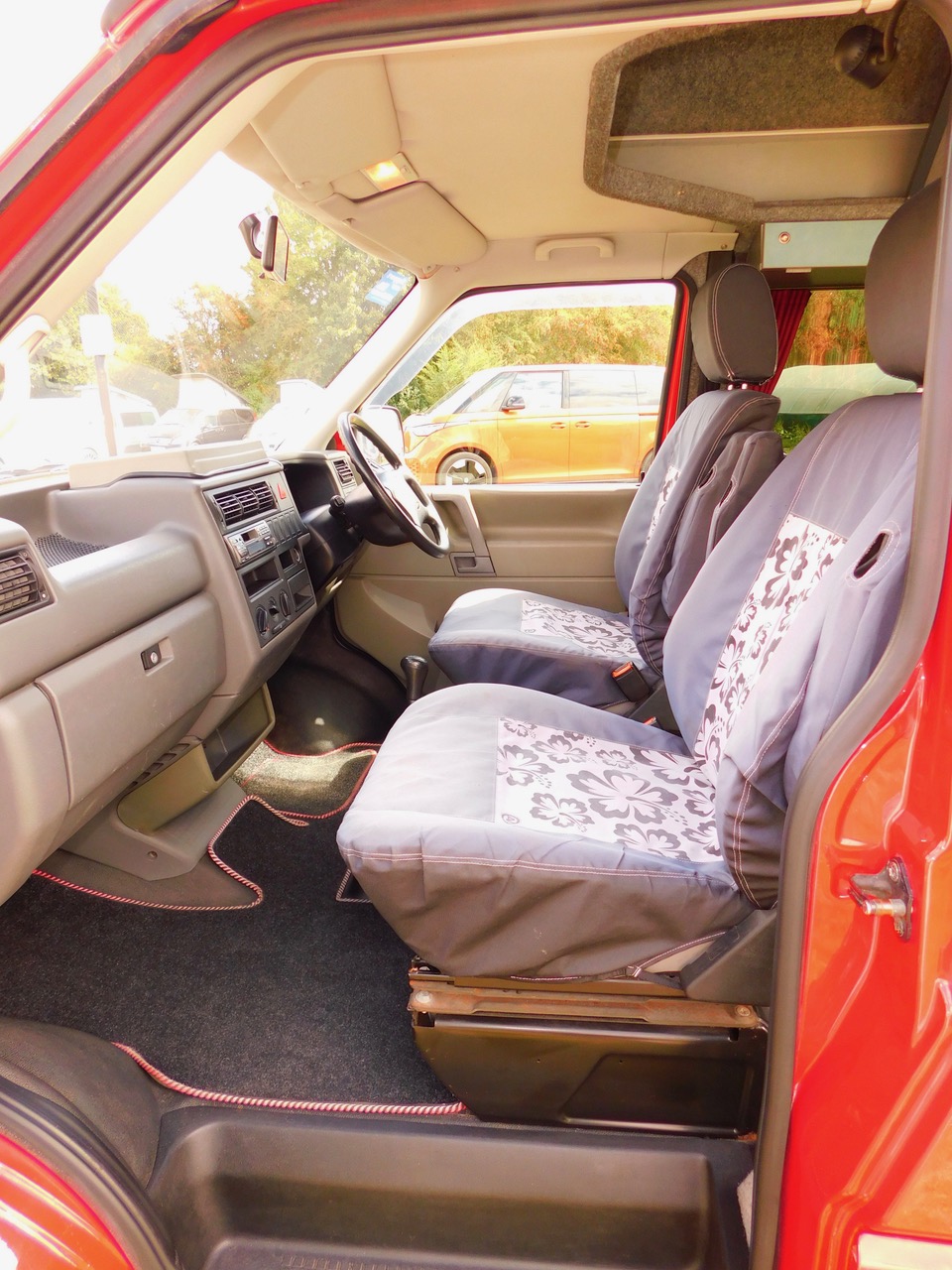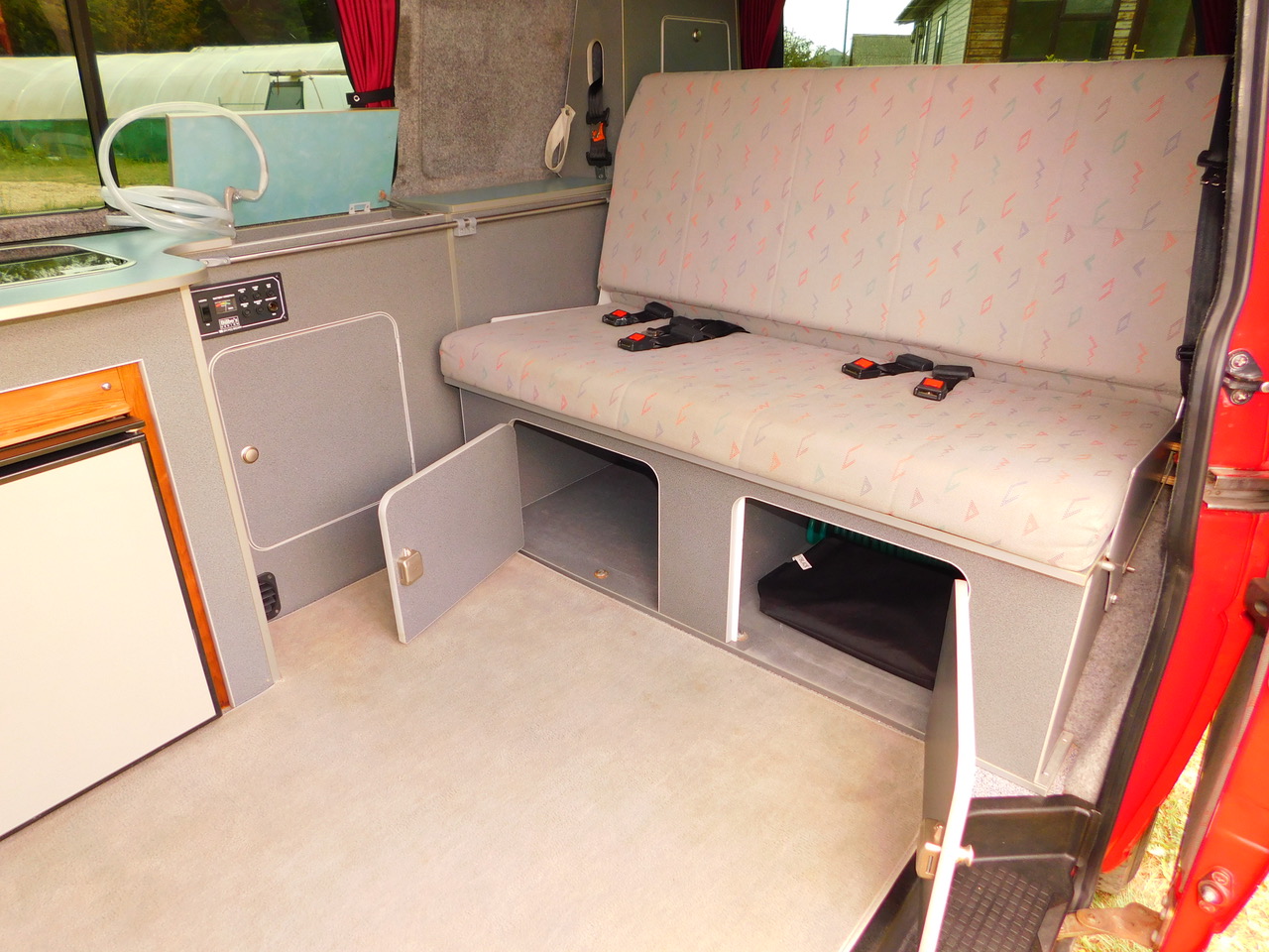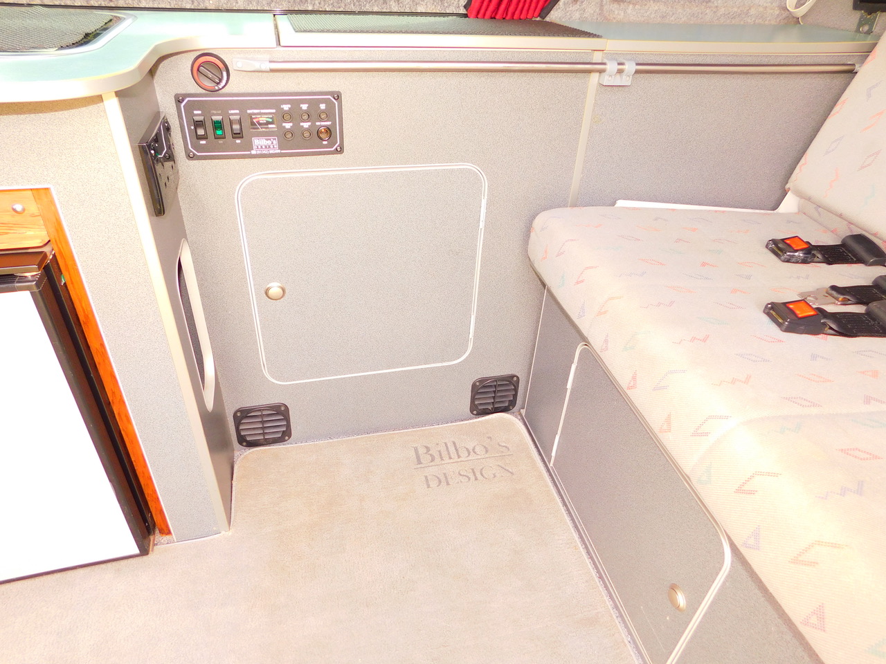 The Side Raising Mushroom Top gives you Full Standing Height Throughout, and we also have 5 Seatbelts in Total (4 x 3 point and a Lap Belt). The Extra Wide Beds will give you an Excellent nights Sleep, and the Full Standing Height throughout will be appreciated. We even have Webasto Diesel Heating for the Rear. Finished in Shiny, Clean and Bright Red Paintwork with Contrasting Contemporary Upholstery and with the usual High Quality Bilbos Cabinetry.