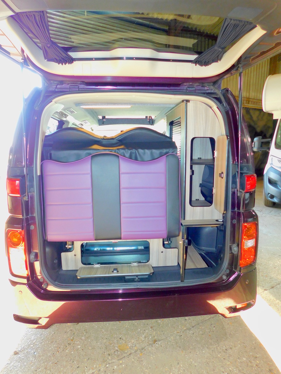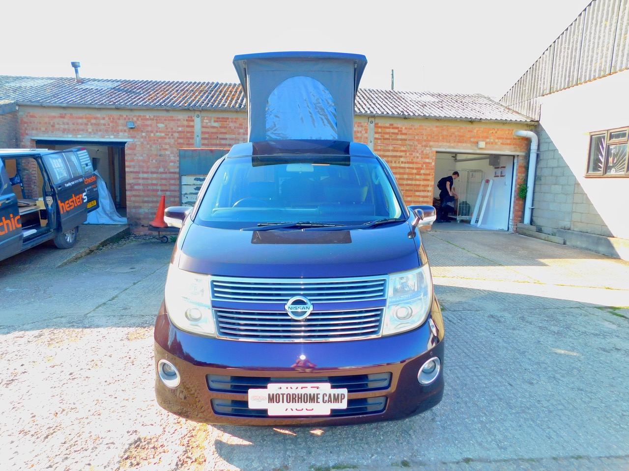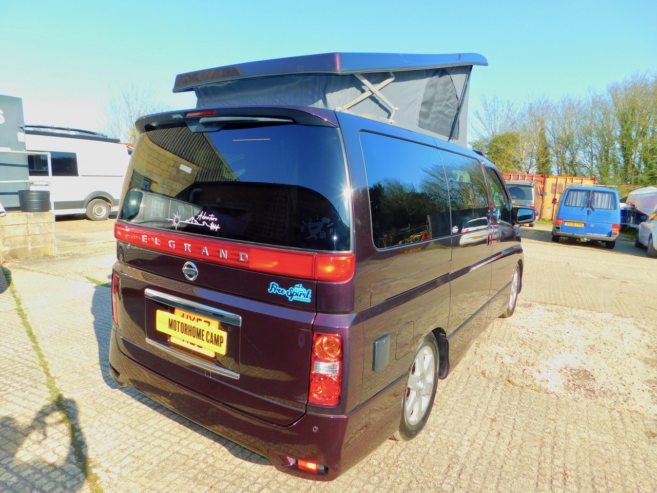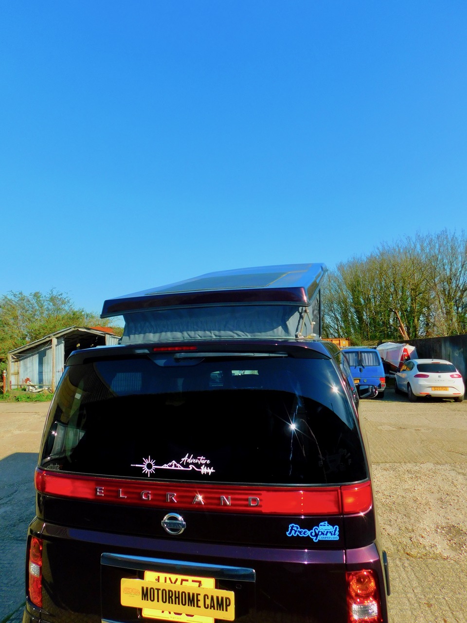 A Super conversion in excellent condition throughout and carried out by the well respected Free Spirit Conversions in Chichester giving a premium quality 2 Plus 2 Berth 3.5 Petrol Automatic Nissan Elgrand Campervan. This model benefits from a Large 120W Roof Mounted Solar Panel to keep the Batteries topped up. This beautiful example is one of the later facelift 2008 models that was imported and very recently Converted. Only 55,766 miles. Please remember that this is the harder to find switchable 2 wd to 4 wd Model. We have electronic Climate Control Air Conditioning and the Electric sliding side doors on both sides, central locking, electric windows and electric folding door mirrors, the Garmin UK and Europe Sat Nav system. You can even use this as your everyday luxury car. Benefitting from a top quality Elevating roof (The bed boards are in this model to make this a 4 berth). We have a side Kitchen finished in high quality Dritwood Laminate Cabinetry with a Dometic 2 burner gas hob and sink with an Electric Tap, a Vitrifigo 12 volt fridge/freezer, a rock’n’roll bed with 2 x 3 point seat belts, giving us 4 in Total. There is Central Locking, Electric Folding Door Mirrors, stylish Led Lighting, Internal roof lights, Window Curtains, a fitted Awning Rail, a space saving Tambour Wardrobe door and 240 volt electrical Hook Up with a fitted Leisure battery to cater for all your electrical needs. We also have vinyl flooring and a removable Dining Table, Plus the Swivelling Front Passenger Seat.