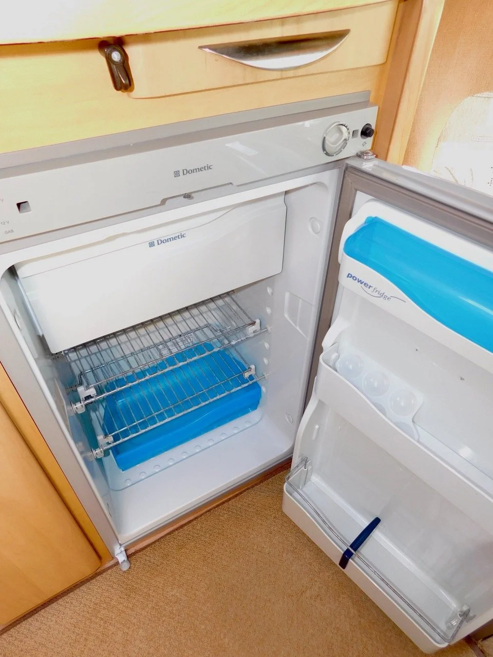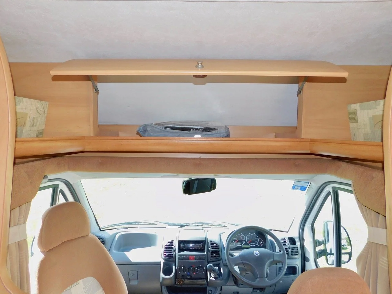 The Bedroom has a Plethora of Storage Cupboards all round and we also have a Huge Double Wardrobe where the Large Folding Dining Table is neatly stored. This can also be used Outside, perhaps with the Awning Rolled Out. On the Outside we have a Large Opening Locker to store all of your folding Chairs and lots of other useful items such as perhaps a portable bbq…. The CAB has a Kenwood Radio CD with USB, and Electric Windows and Door Mirrors, as well as the Rear view mirror mounted Monitor for the Colour Reversing Camera, and Central Locking..